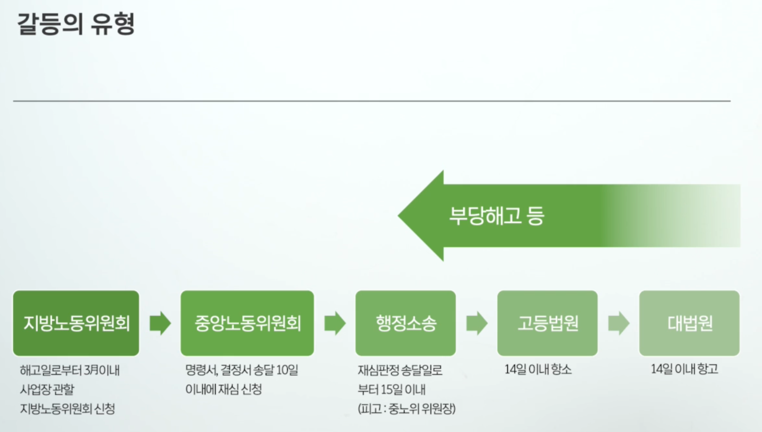 - 부당해고 → 노동위원회를 통한 구제 절차